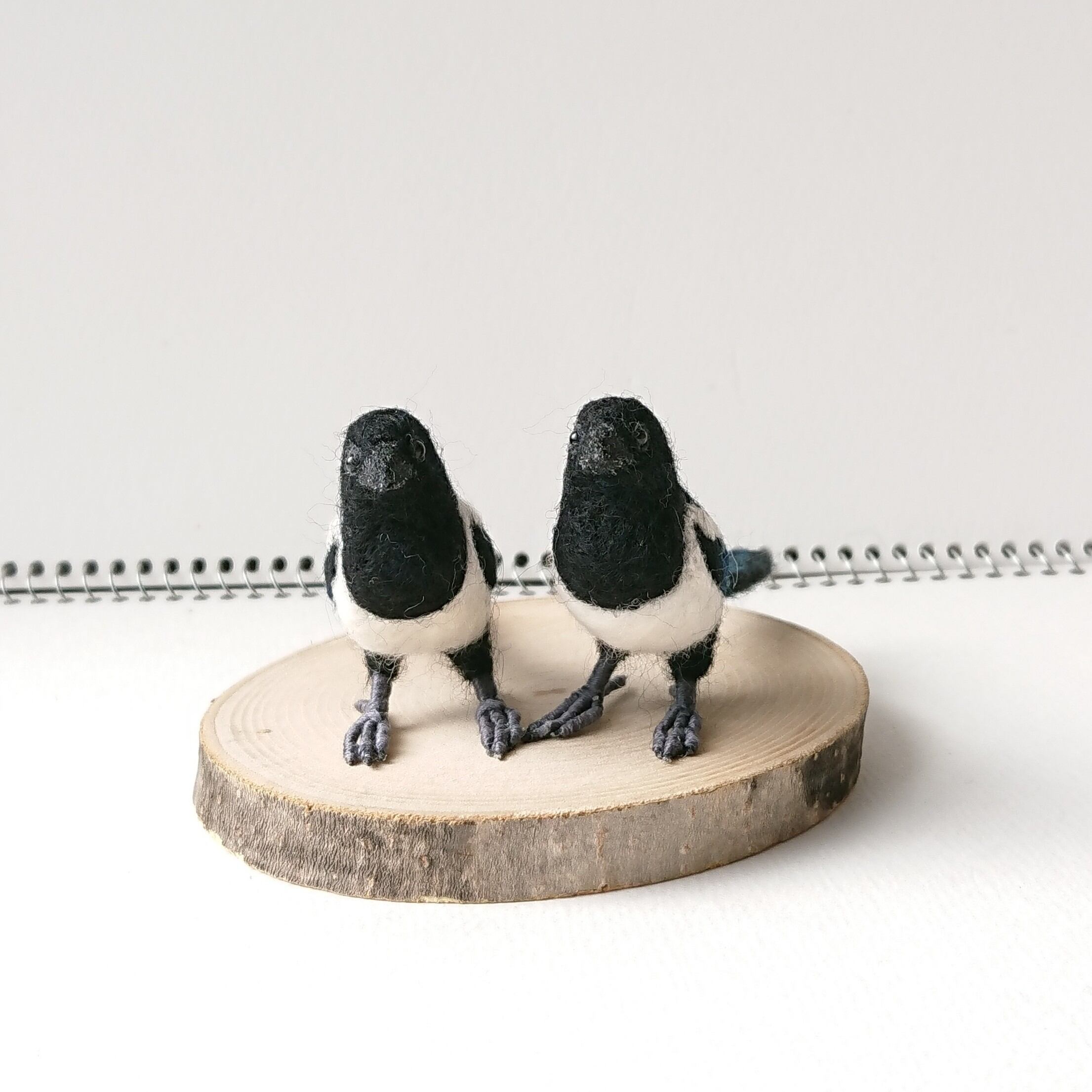 くちばしから尾まで約10cmのカササギのマスコットです。