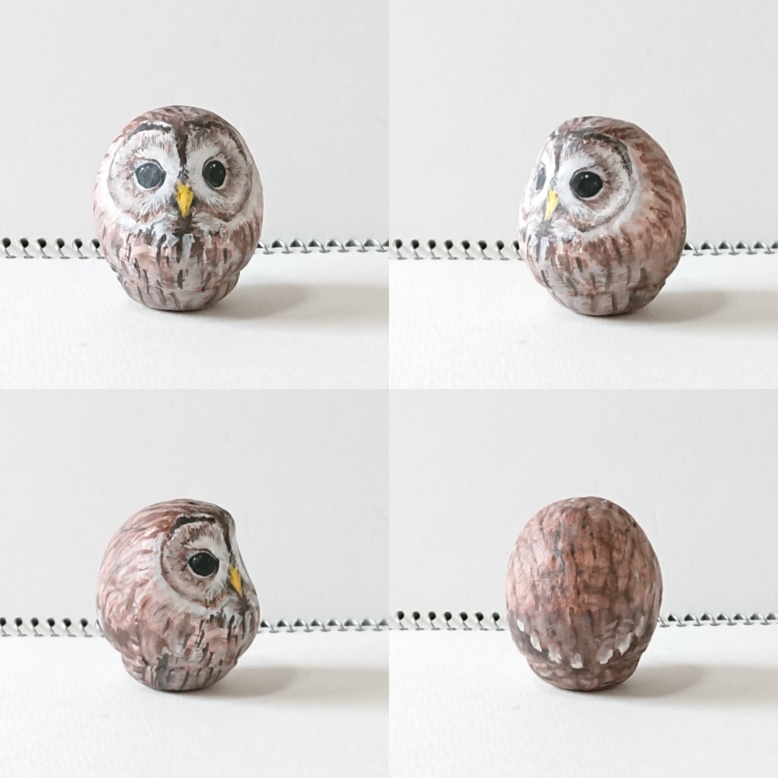 白だるまにフクロウを絵付けしました。4.5cmと小さいだるまなのでちょっとした所にも置けます。
