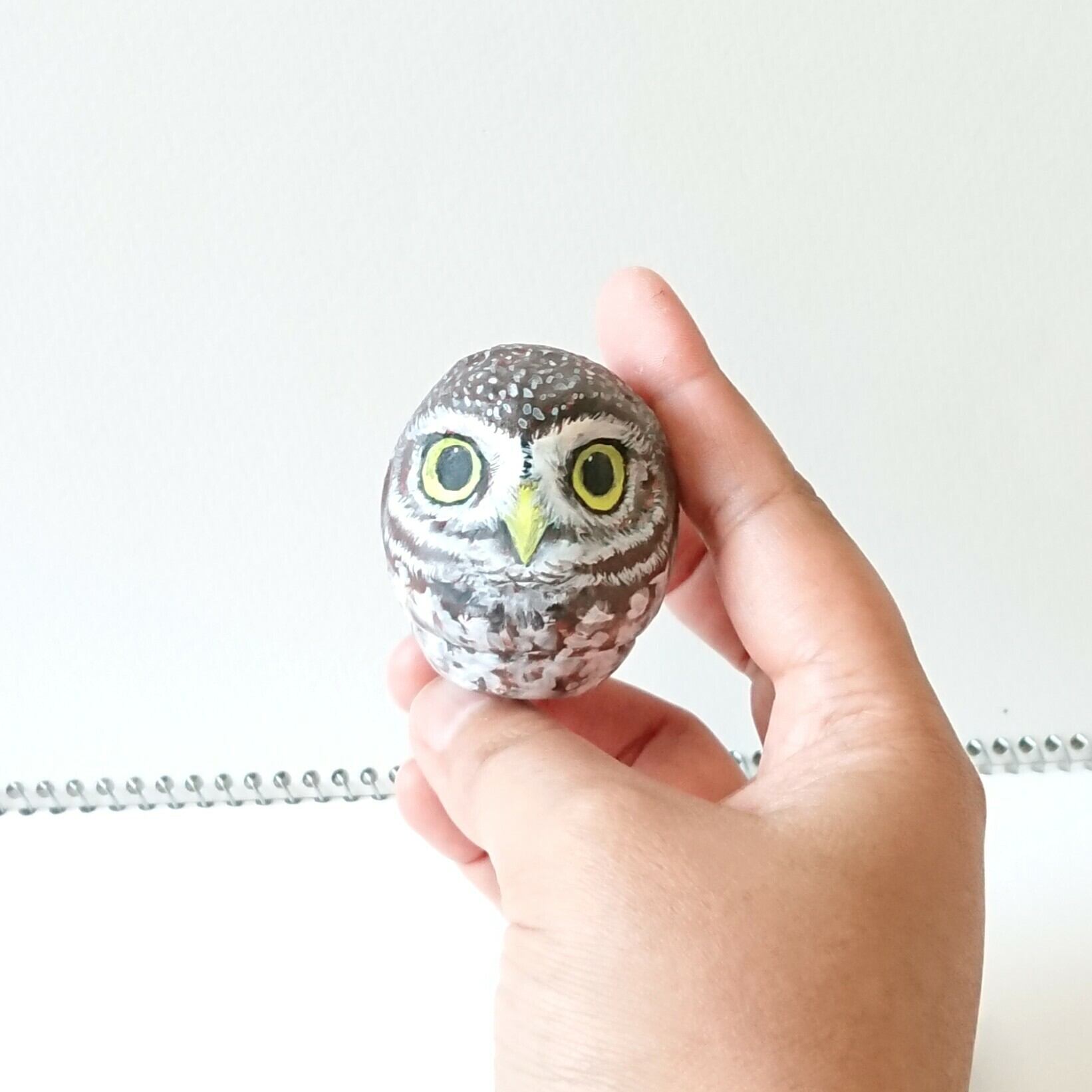 白だるまにフクロウを絵付けしました。4.5cmと小さいだるまなのでちょっとした所にも置けます。