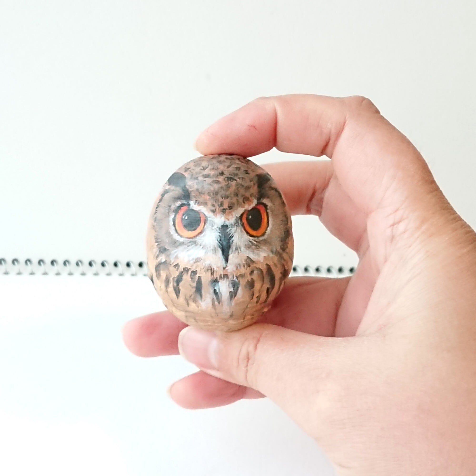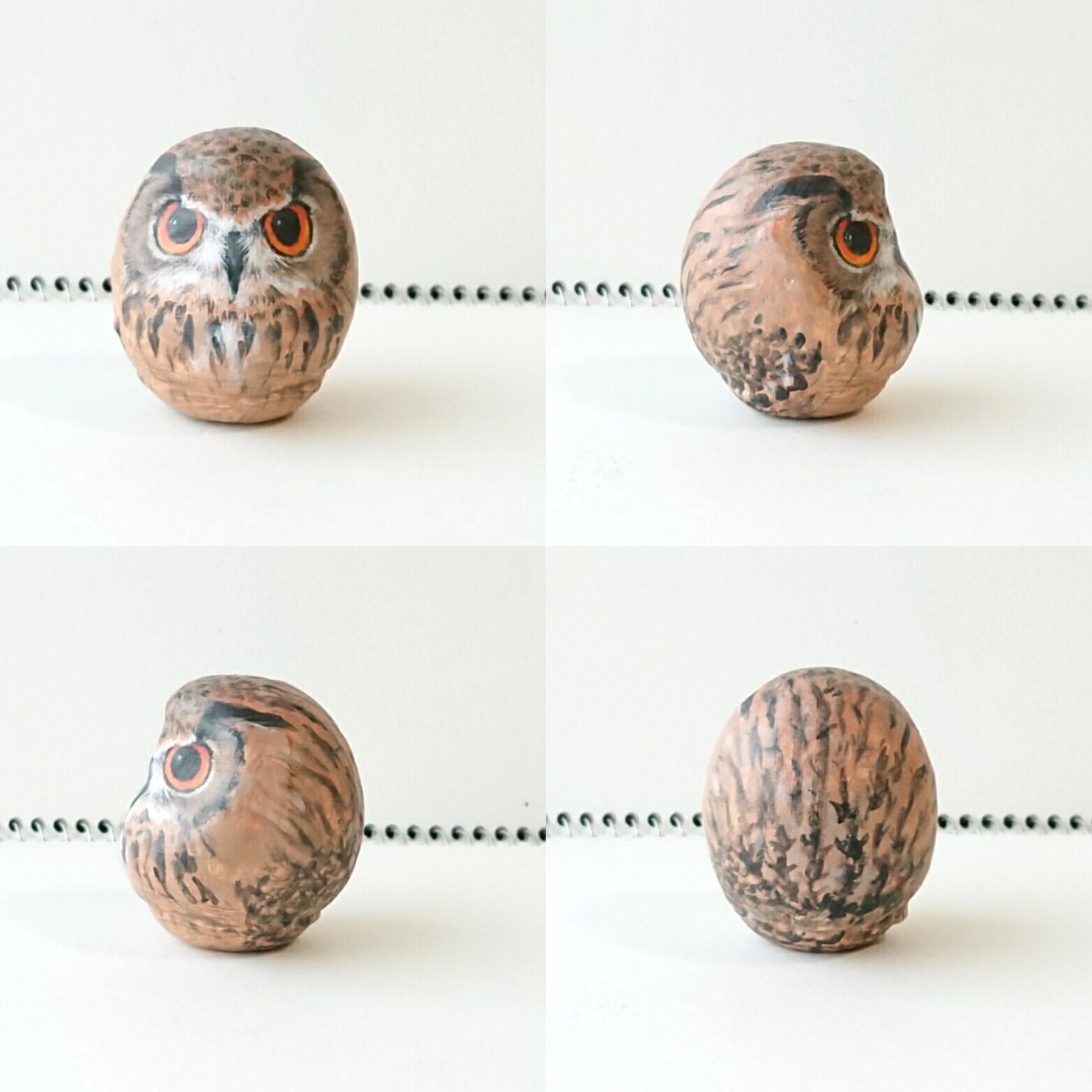 白だるまにフクロウを絵付けしました。4.5cmと小さいだるまなのでちょっとした所にも置けます。