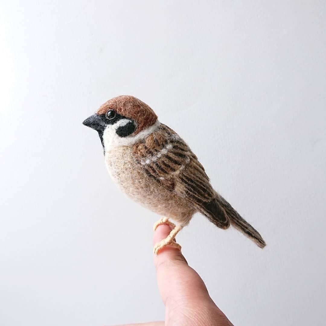羊毛フェルトで制作したすずめのマスコットです。足に針金を使用しているので指に掴まらせることが出来ます。