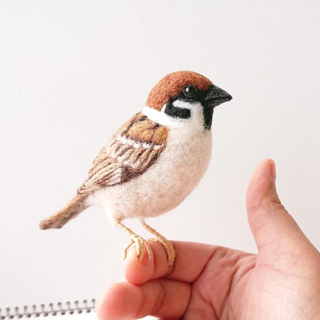 羊毛フェルトで制作したすずめのマスコットです。足に針金を使用しているので指に掴まらせることが出来ます。