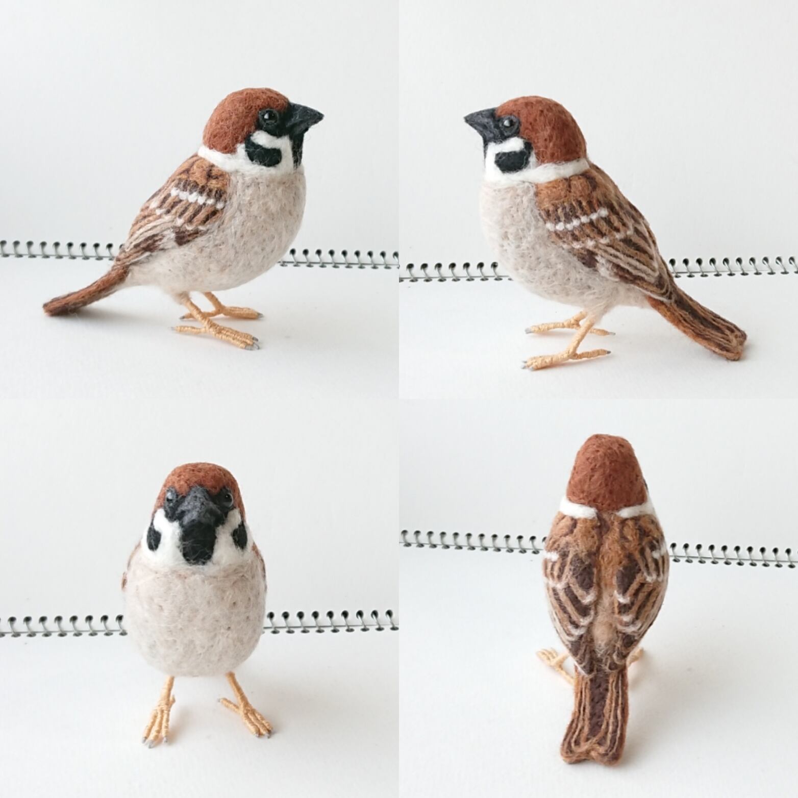 羊毛フェルトで制作したすずめのマスコットです。足に針金を使用しているので指に掴まらせることが出来ます。