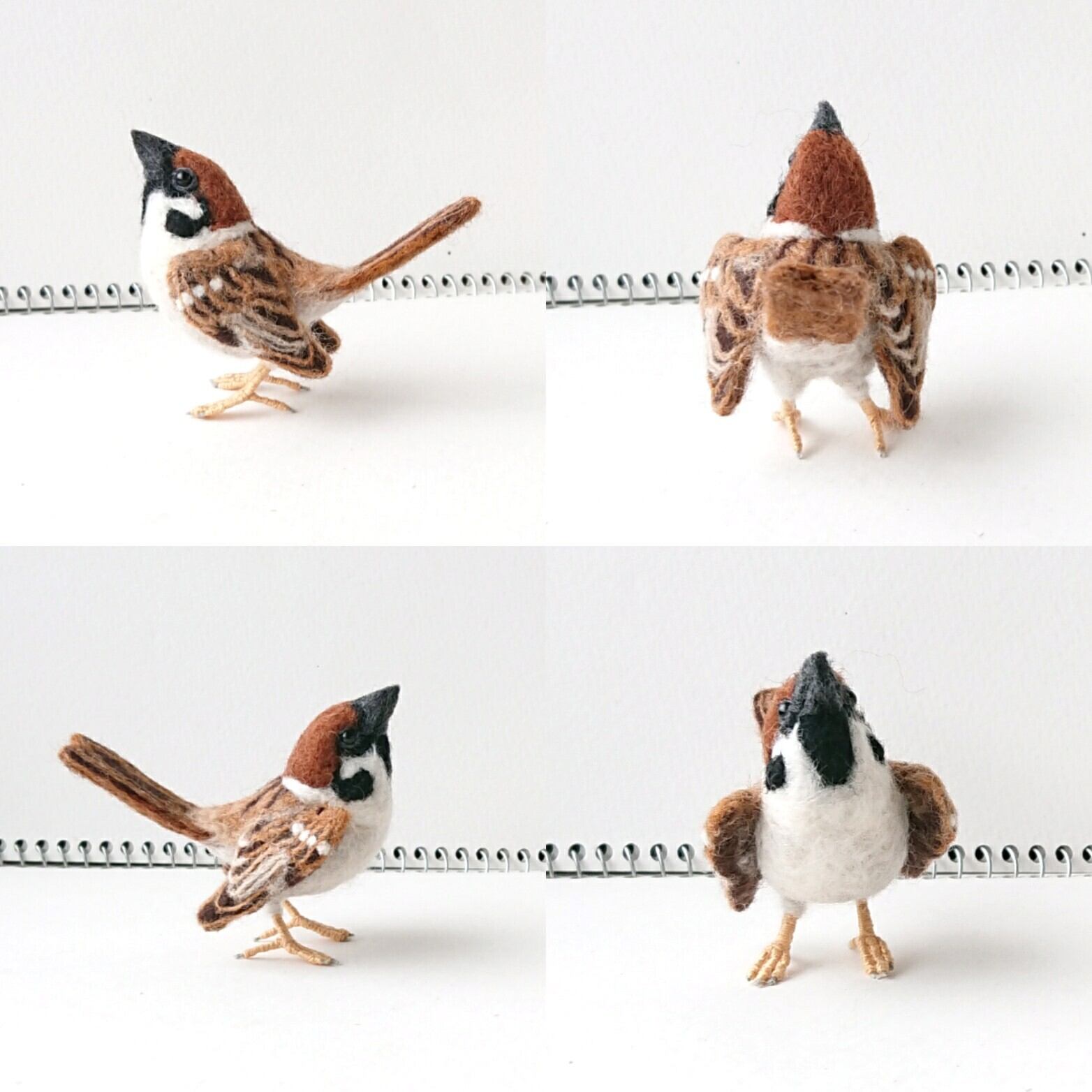 羊毛フェルトで制作した求愛するすずめのマスコットです。足に針金を使用しているので指に掴まらせることが出来ます。
