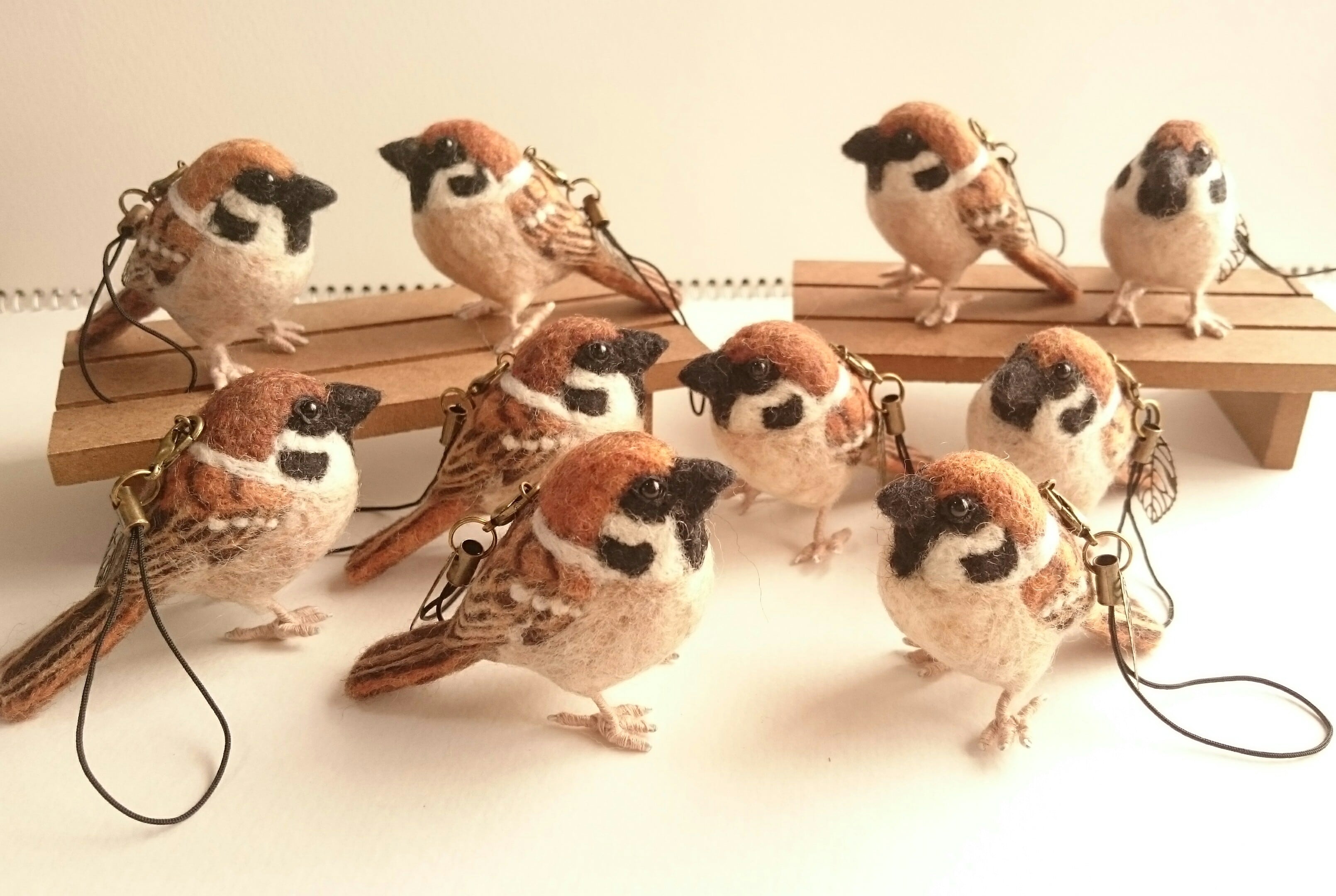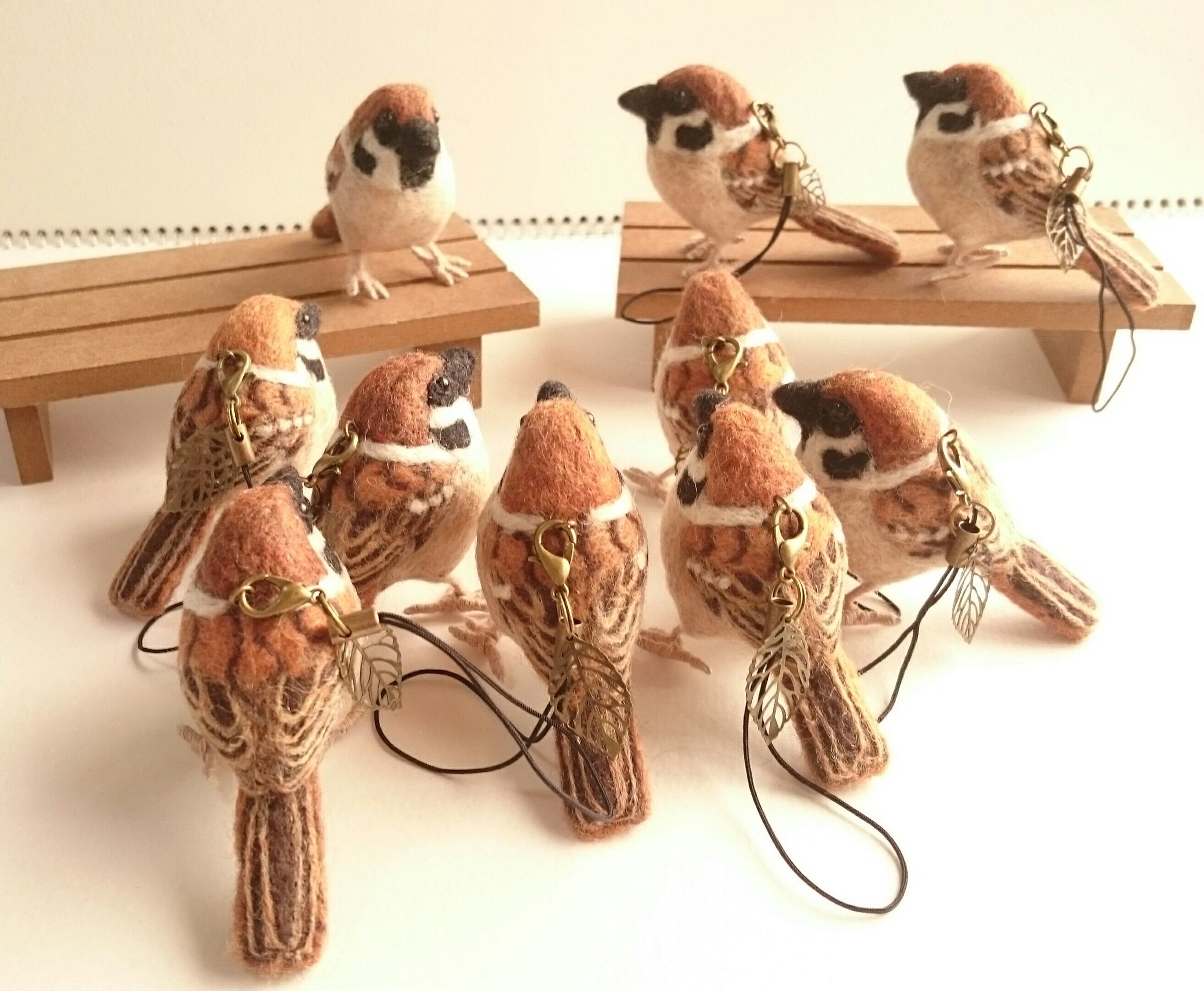 羊毛フェルトで出来た小さくてコロコロ太ったすずめのストラップです。