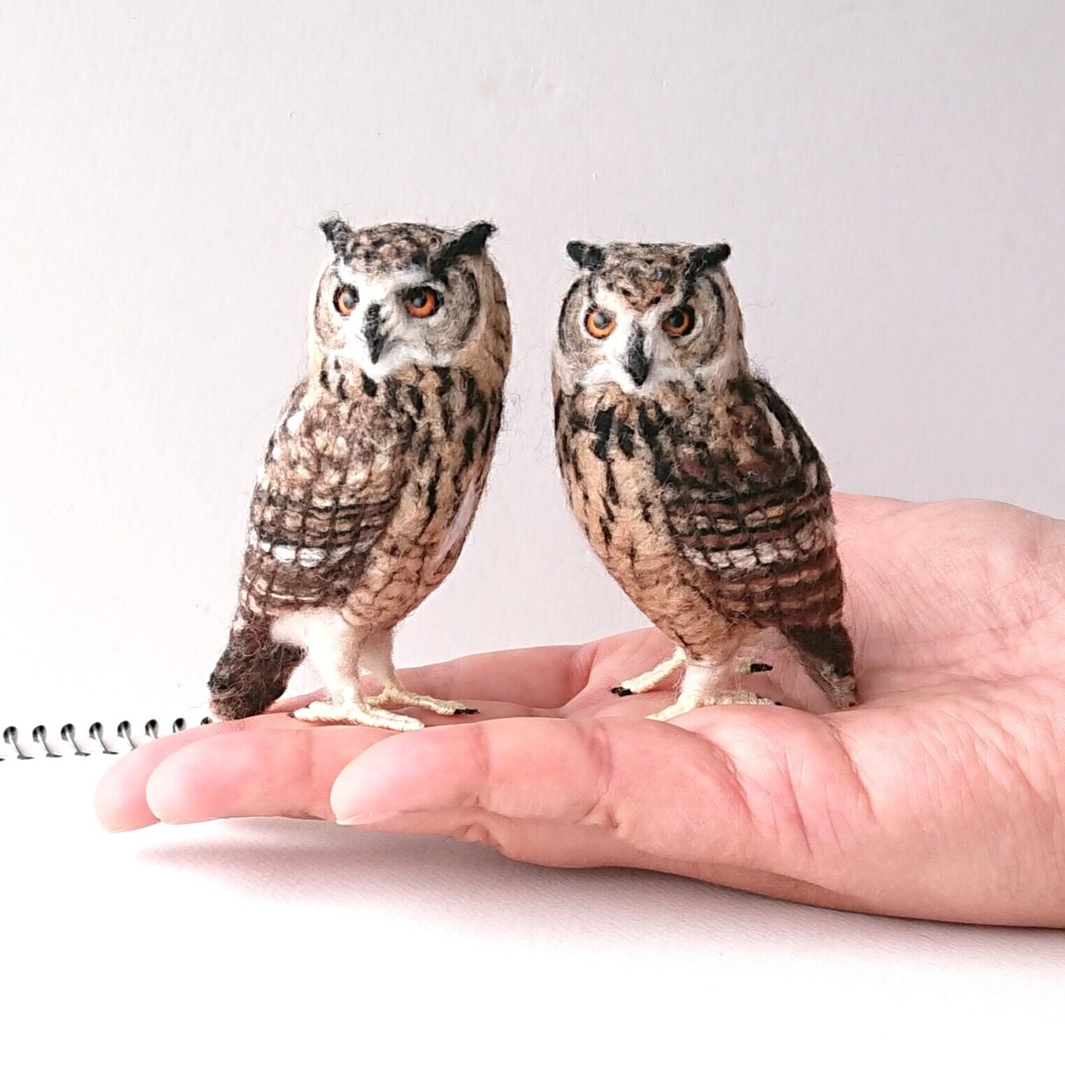 羊毛フェルトで制作したベンガルワシミミズクのマスコットです。足に針金を使用しているので指に掴まらせることが出来ます。