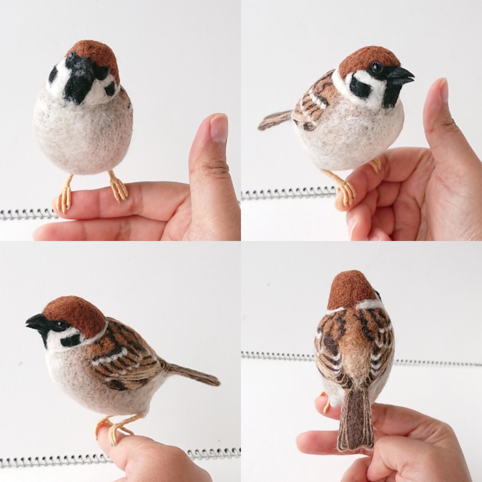 くちばしから尾羽まで約12cm高さ9cmのすずめです。