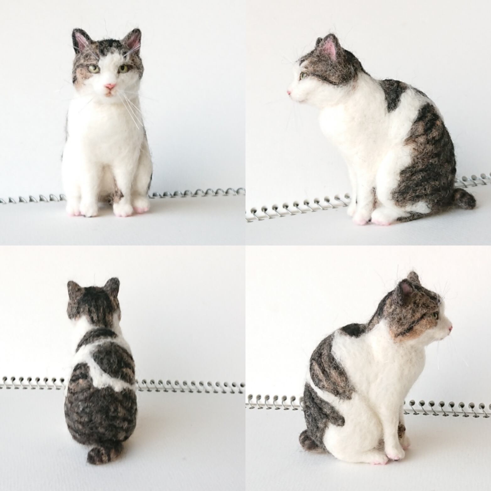 羊毛フェルトで制作したうちの猫(名前:がす)のマスコットです。むくむくに太っていて大好きな猫なのでこの先何回も作ると思います。この子は1体目のがすです。