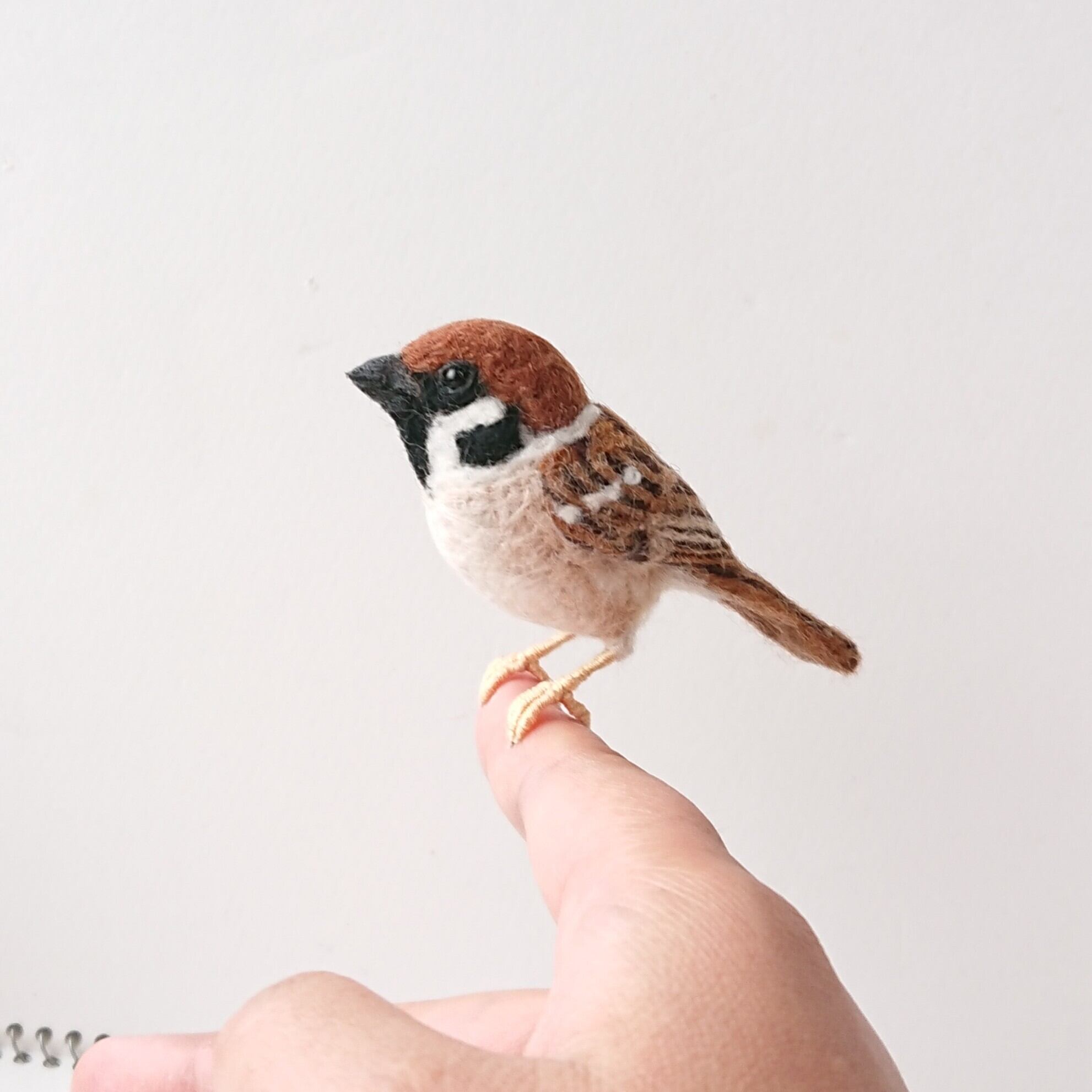 頭から尾まで約8.5cm高さ5.5cmのすずめのマスコットです。