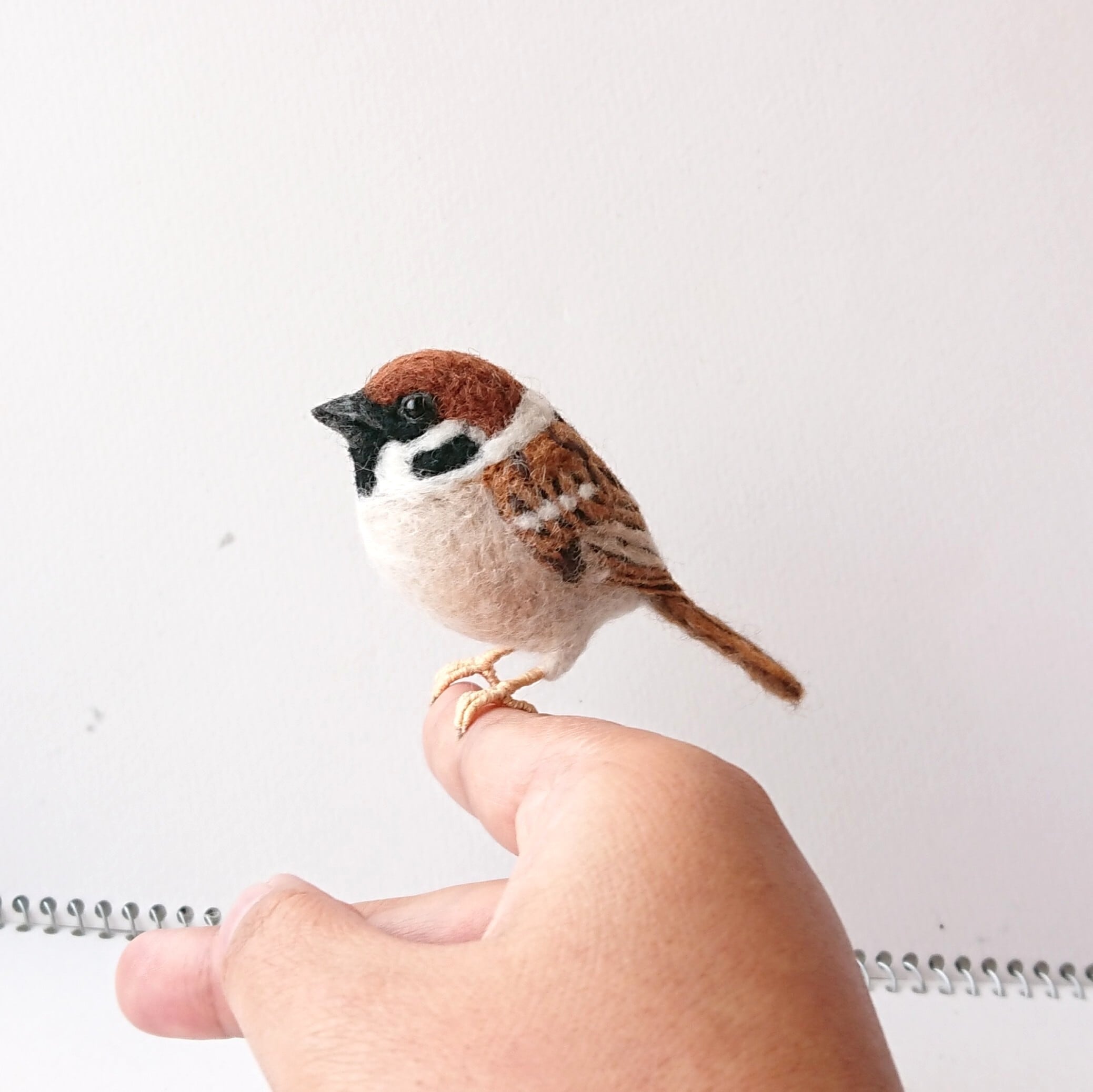 頭から尾まで約8.5cm高さ5.5cmのすずめのマスコットです。